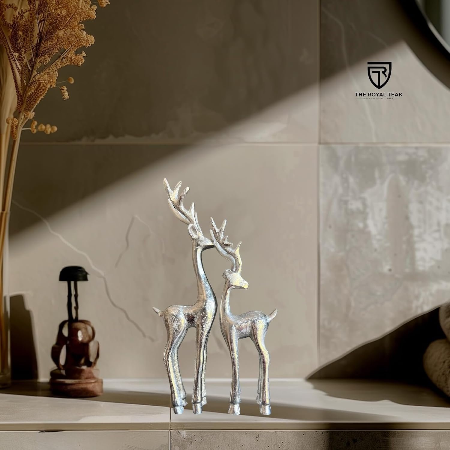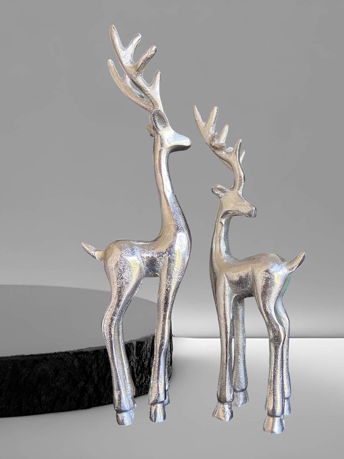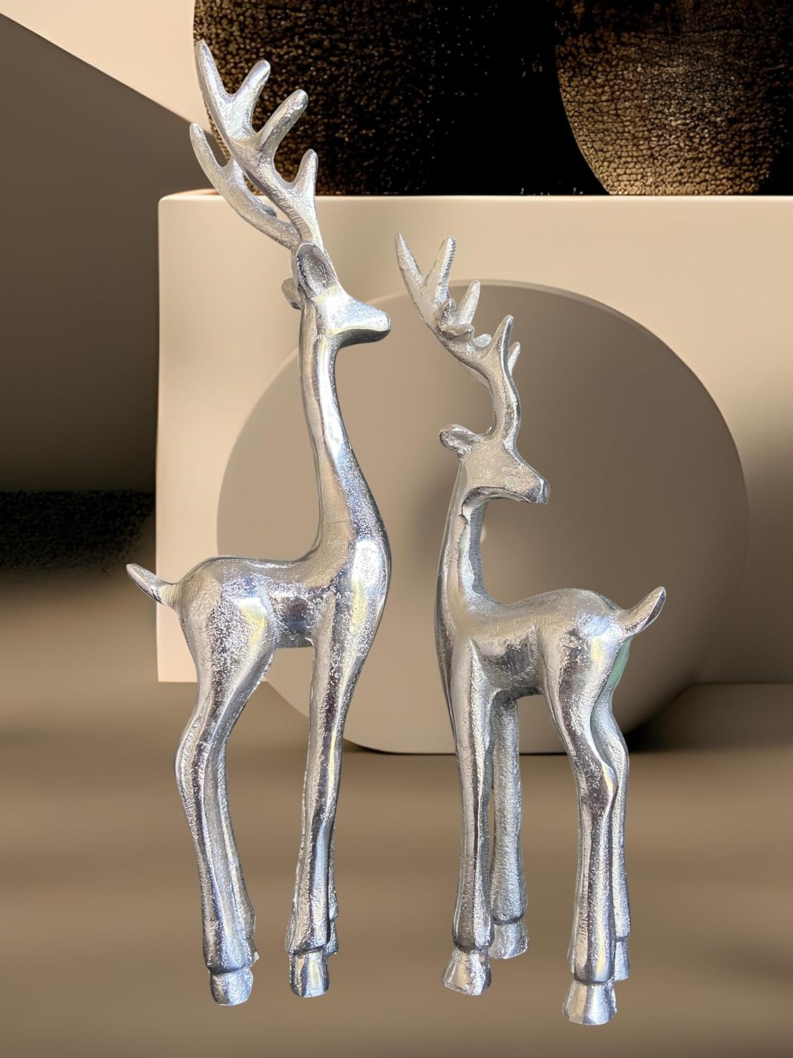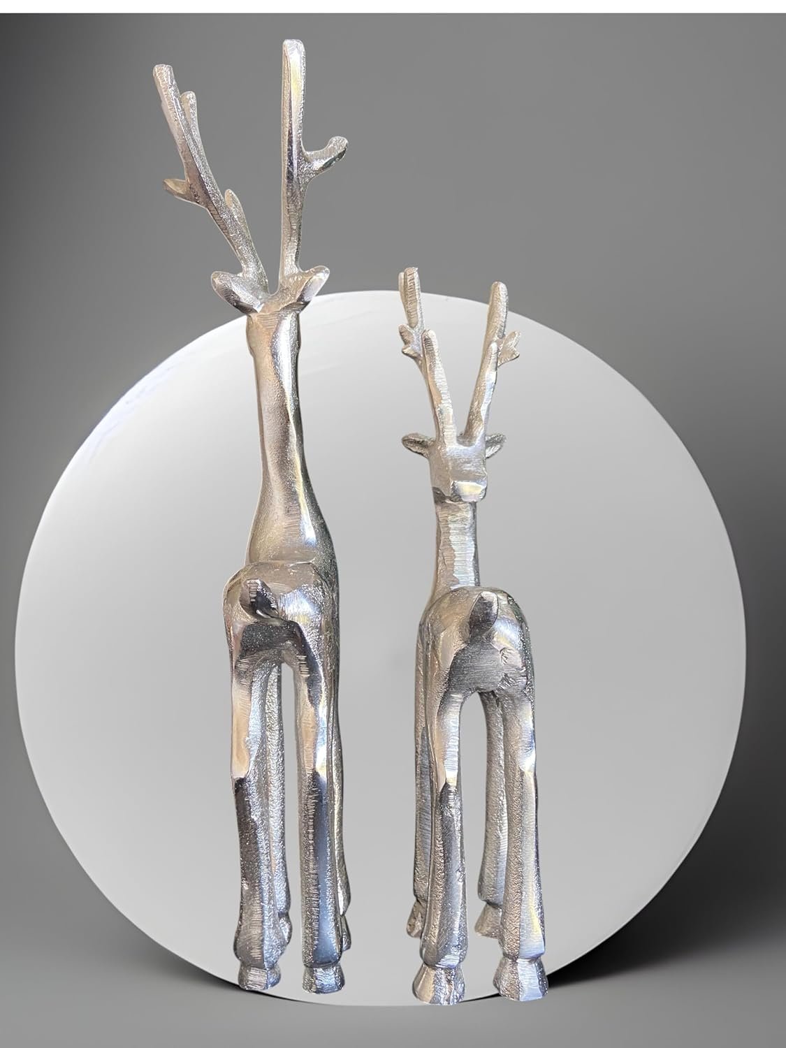 - ELEGANT DESIGN: Beautifully crafted silver reindeer figurines featuring sleek, modern styling perfect for contemporary holiday décor